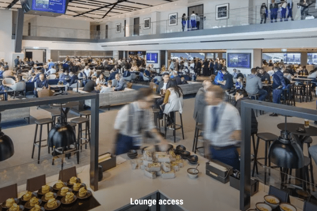 Lounge tilgang, mat voucher, drikke i pausen, Spurs-legende besøk